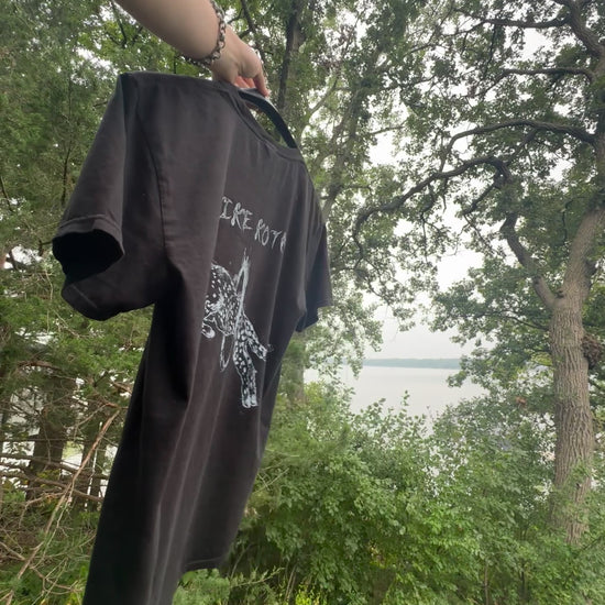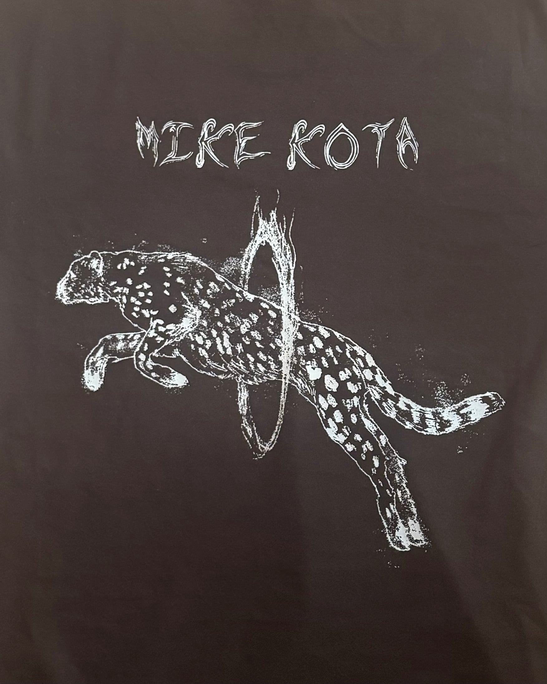 "Mike Kota" + cheetah cover art on back of shirt